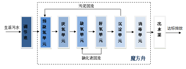 魔方舟泥膜耦合脫氮除磷一體化污水處理設(shè)備采用泥膜耦合A3O工藝,具有故障點(diǎn)少、工藝穩(wěn)定性高,多點(diǎn)精準(zhǔn)氣提控制、低能耗,出水水質(zhì)穩(wěn)定,可無人值守的特點(diǎn)。