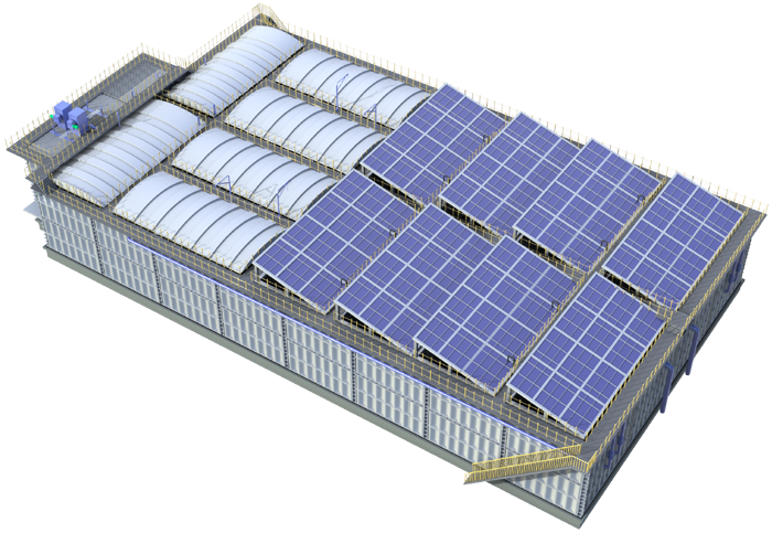 省錢、省事、省力、省心——華騏環(huán)保Sup-ASS模塊化裝配式水廠正以一種極簡的方式逐步顛覆傳統(tǒng)的污水廠鋼砼結構非標準化的建造模式。Sup-ASS裝配式水廠采用標準化鋼制模塊預制拼裝,結構優(yōu)化模擬,智能化流水線生產,使預制模塊高度標準化、精度高、拼裝靈活。預制模塊系自動模壓波紋板模塊,平頂正弦波波形,相對于梯形或矩形結構,它的結構更穩(wěn)定、強度更高、材料更省,因此較之混凝土構筑物的造價更有優(yōu)勢。Sup-ASS裝配式水廠運輸及施工方便靈活,不受運輸尺寸、構筑物體積、污水處理工藝的限制,可以像積木一樣根據項目的實際需求進行自由的組合;Sup-ASS裝配式水廠所有模塊由螺栓與鎖扣緊固連接、拆裝方便,可重復使用,即使遇到規(guī)劃調整的情況,整廠亦可拆卸搬遷,循環(huán)使用率可達100%;Sup-ASS裝配式水廠工期較之傳統(tǒng)水廠可縮短70%左右,比如,日處理量5萬噸的傳統(tǒng)鋼砼結構水廠建設周期至少需要一年左右的時間,而Sup-ASS無需焊接,螺栓拼裝,僅三個月便可完工通水。Sup-ASS裝配式水廠標準化設計、智造的生產方式,單元模塊化拼裝方式,使施工全過程無污染真正做到綠色低碳,契合30、60碳達峰碳中和目標,實現傳統(tǒng)環(huán)保工程模式的顛覆。