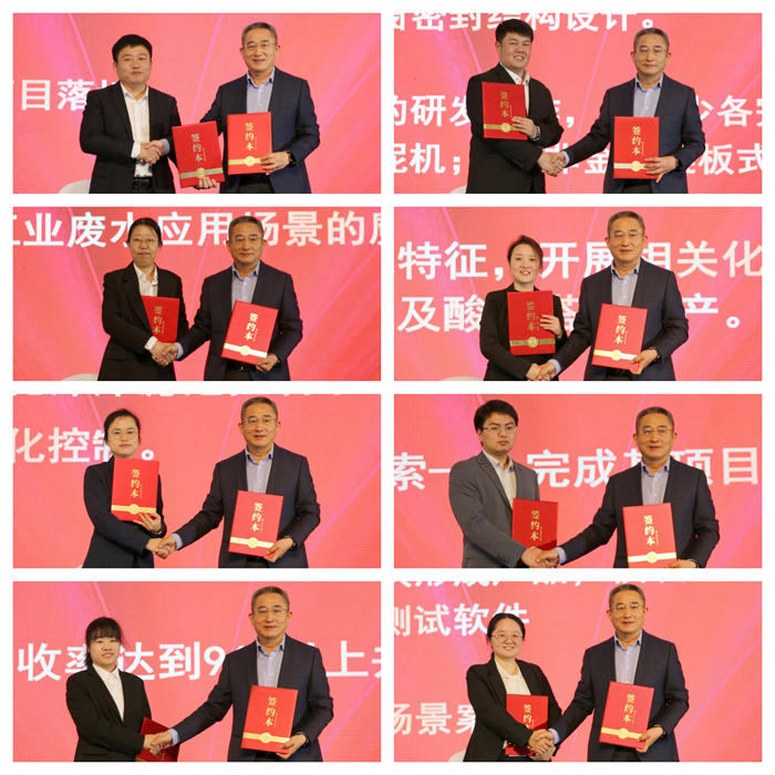 盛典在市經(jīng)開區(qū)管委會(huì)副主任方強(qiáng)的致辭中拉開了帷幕,在接下來的產(chǎn)品推介會(huì)上,來自裝配式水廠、深床反硝化濾池系統(tǒng)、高效/磁混凝系統(tǒng)、BAF智慧工藝、臭廢氣收集及處理系統(tǒng)、工業(yè)物聯(lián)智能控制產(chǎn)品及系統(tǒng)、魔方智水產(chǎn)品、環(huán)保非標(biāo)設(shè)備八個(gè)團(tuán)隊(duì)的產(chǎn)品經(jīng)理從市場(chǎng)角度出發(fā),分享了各自技術(shù)化產(chǎn)品的新功能、新亮點(diǎn)以及產(chǎn)生的效益,并規(guī)劃了2025年的市場(chǎng)工作、產(chǎn)品應(yīng)用場(chǎng)景擴(kuò)展、升級(jí)的思路及目標(biāo)。隨后,會(huì)議舉行了八位產(chǎn)品經(jīng)理與副董事長鄭俊簽約及市場(chǎng)銷售人員誓師儀式。