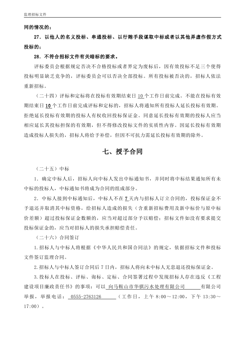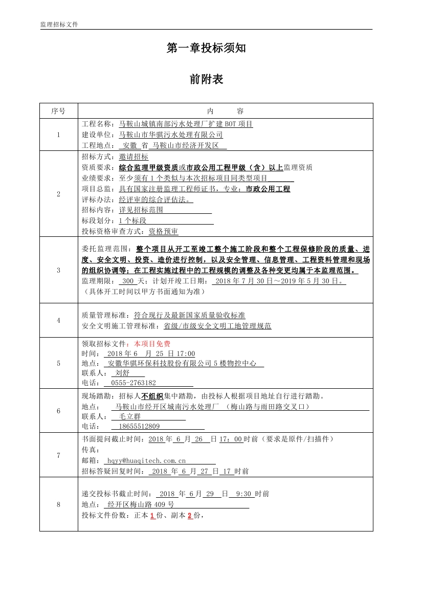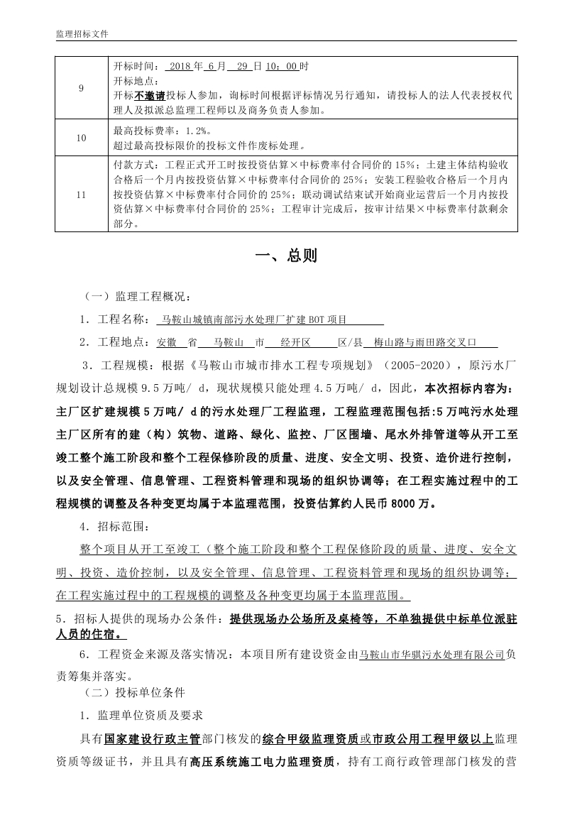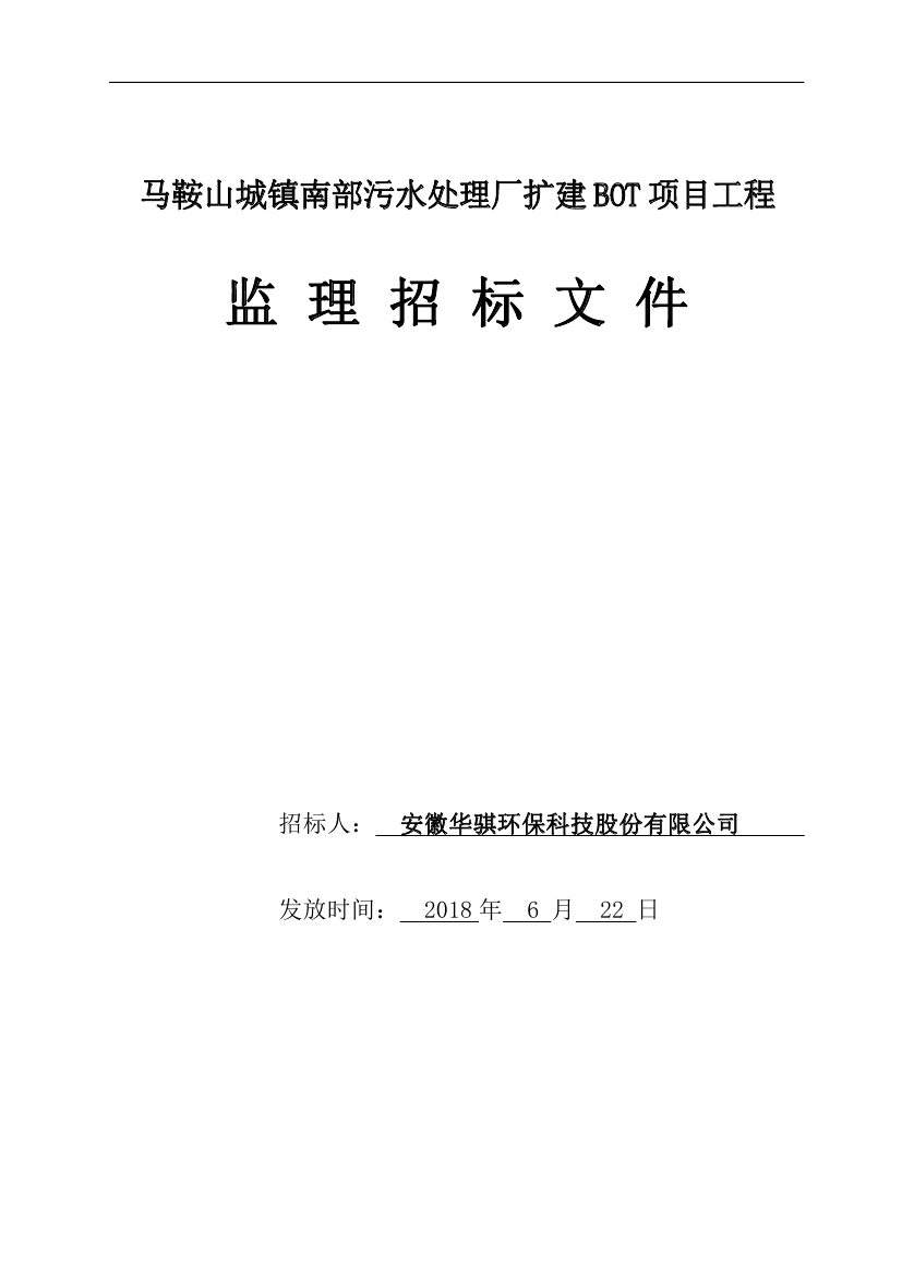 馬鞍山城鎮(zhèn)南部污水處理廠擴(kuò)建BOT項(xiàng)目工程監(jiān)理招標(biāo)文件