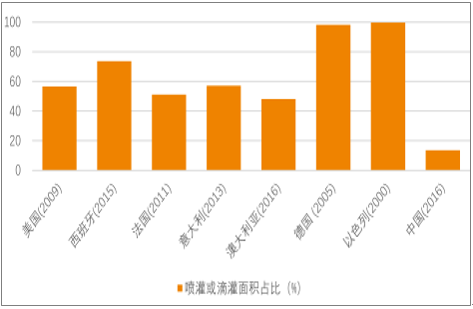 2016年,我國灌溉面積達到10.98億畝,其中噴灌和微灌面積僅1.49億畝,占比僅為13.57%。而美國2009年這一比例就達到56.5%、西班牙2015年為73.7%,以色列更是于2000年就高達90%以上。相比于發(fā)達國家,節(jié)水農(nóng)業(yè)建設(shè)仍然相對落后,節(jié)水灌溉仍然有充分的市場空間。