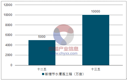 建設(shè)面積方面,根據(jù)國家農(nóng)業(yè)節(jié)水綱要(2012-2020)的規(guī)劃,到2020年全國農(nóng)田有效灌溉面積達到10億畝,新增節(jié)水灌溉工程面積3億畝,其中新增高效節(jié)水灌溉工程面積1.5億畝以上?!笆濉逼陂g,國家將新增高效節(jié)水灌溉面積1億畝,較“十二五”期間新增5000萬畝量翻一倍。