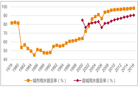 我國城市和現(xiàn)成的供水體系建設(shè)基本完成,用水普及率較高
