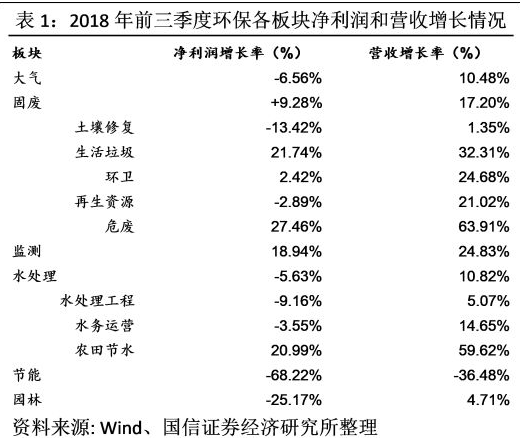 我們分析環(huán)保生態(tài)行業(yè)中大氣、固廢、水務(wù)、監(jiān)測(cè)、節(jié)能和園林六大板塊的65家公司的2018年三季報(bào)情況。同時(shí)根據(jù)板塊內(nèi)部公司的具體業(yè)務(wù),將固廢、水務(wù)兩大板塊進(jìn)一步拆分,將固廢板塊分為生活垃圾、危廢、環(huán)衛(wèi)、土壤修復(fù)、再生資源5個(gè)細(xì)分子板塊,將水務(wù)板塊分為水處理工程、水務(wù)運(yùn)營(yíng)2個(gè)細(xì)分子版塊,從各項(xiàng)指標(biāo)詳細(xì)分析了環(huán)保行業(yè)整體的發(fā)展情況。