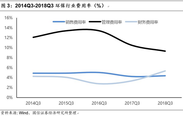 前三季度環(huán)保板塊總體的財(cái)務(wù)費(fèi)用率為5.33%,同比提高了1.97pct,增幅明顯,而管理費(fèi)用率和銷售費(fèi)用率兩項(xiàng)指標(biāo)均有所下滑,表明環(huán)保企業(yè)前三季承擔(dān)著巨大的資金成本上行壓力,同時(shí)盡可能地壓縮內(nèi)部成本,降低銷售和管理費(fèi)用,以期熬過(guò)寒冬。