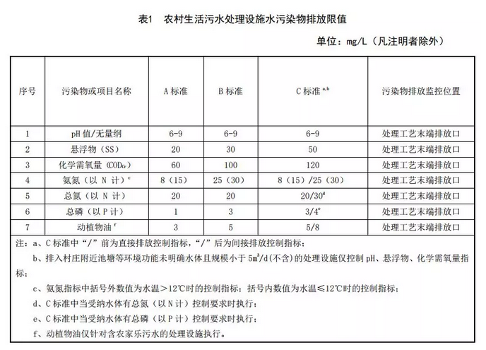 根據(jù)農(nóng)村污水處理設施排入地表水的環(huán)境功能和保護目標,以及污水處理設施的處理工藝,將控制項目的標準值分為一級標準、二級標準和三級標準。