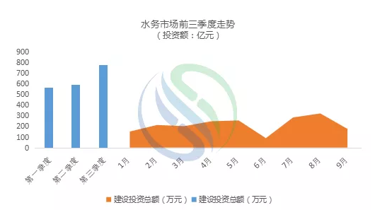 2019年前三季度整個水務(wù)市場情況,總規(guī)模達(dá)1930億元??傮w來說前三季度水務(wù)項(xiàng)目勢頭強(qiáng)勁,尤其8月份,總規(guī)模超過了300億元,前三季度30億元的項(xiàng)目達(dá)10個。