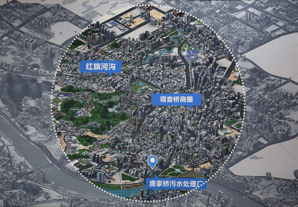 華騏環(huán)保結(jié)合重慶山地城市空間特性,充分利用豎向立體空間,將污水廠上部空間建成城市廣場(chǎng)、公共停車(chē)庫(kù)和綜合大樓,提高土地資源利用率,具有較高的環(huán)境效益、經(jīng)濟(jì)效益和社會(huì)效益。附屬建設(shè)的綜合辦公樓及車(chē)庫(kù)商業(yè)價(jià)值超過(guò)10億元。