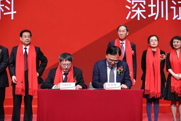 董事長王健與深交所領導簽署《證券上市儀式》