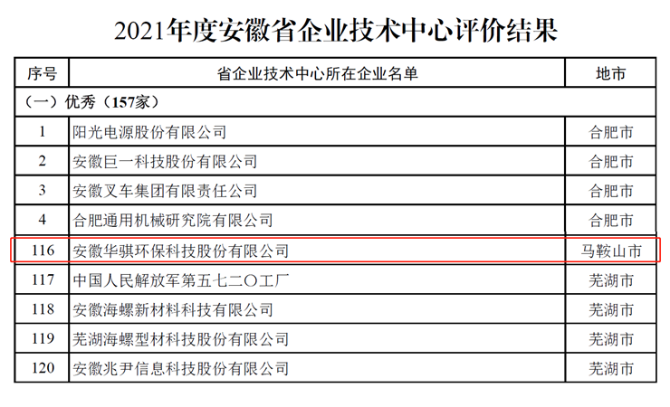 近日,安徽省經(jīng)濟(jì)和信息化廳發(fā)布《關(guān)于2021年度省企業(yè)技術(shù)中心評(píng)價(jià)結(jié)果的通知》,安徽華騏環(huán)??萍脊煞萦邢薰炯夹g(shù)中心獲評(píng)“安徽省優(yōu)秀企業(yè)技術(shù)中心”。“優(yōu)秀”是省企業(yè)中心評(píng)價(jià)的最高榮譽(yù),本次全省共計(jì)1538家企業(yè)技術(shù)中心,經(jīng)省經(jīng)濟(jì)和信息化主管部門審查、第三方評(píng)價(jià)與最終審定,其中157家省級(jí)企業(yè)技術(shù)中心評(píng)價(jià)為優(yōu)秀,753家為良好,537為合格,91家為不合格且撤銷省企業(yè)技術(shù)中心資格。獲評(píng)優(yōu)秀企業(yè)技術(shù)中心在產(chǎn)品創(chuàng)新、工藝創(chuàng)新、商業(yè)模式創(chuàng)新、產(chǎn)學(xué)研合作及創(chuàng)新成果等方面做出鮮明特色,并獲得優(yōu)異成果,對(duì)全省技術(shù)中心建設(shè)具有引領(lǐng)示范作用。
