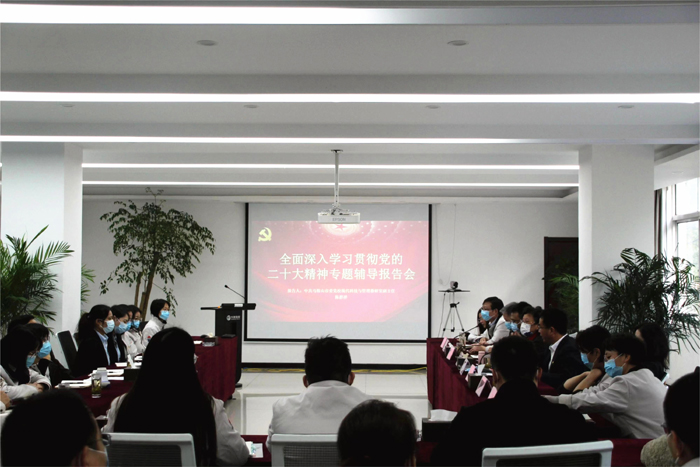 陳群祥教授作題為《全面深入學習貫徹黨的二十大精神》專題分享,闡述了黨的二十大的主題、主要成果,講解了過去5年的工作和新時代10年的偉大變革,闡釋了馬克思主義中國化時代化、中國式現(xiàn)代化的中國特色和本質(zhì)要求,解讀了全面建設(shè)社會主義現(xiàn)代化國家的目標任務(wù)、堅持黨的全面領(lǐng)導和全面從嚴治黨的重大部署、應對風險挑戰(zhàn)的重要要求,講解了關(guān)于報告對青年的期望與要求。對黨的二十大精神作了全面宣講和深入闡釋。