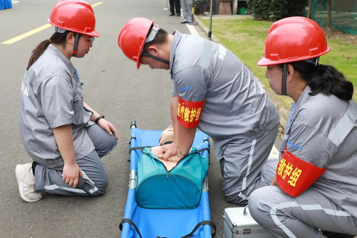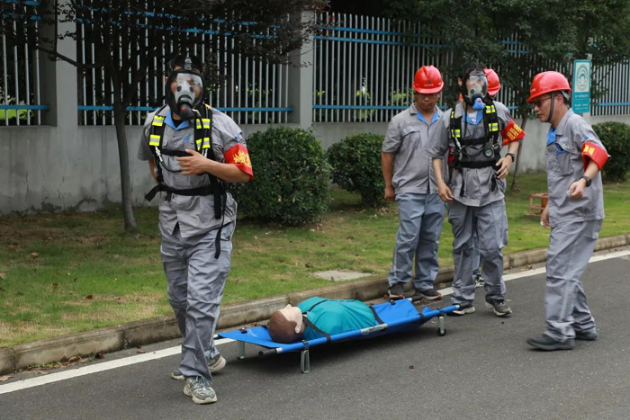 當(dāng)天下午2點(diǎn),演練正式開始。演練場景模擬華騏污水廠磁混凝沉淀池污泥泵房內(nèi)員工在處理污泥泵出口壓力不正常過程中,未遵守作業(yè)規(guī)程,違規(guī)摘掉正壓送風(fēng)長管呼吸器,吸入有毒氣體后中毒暈倒?,F(xiàn)場人員發(fā)現(xiàn)后立即上報公司領(lǐng)導(dǎo),經(jīng)理趕赴事故發(fā)生區(qū)域,成立現(xiàn)場指揮部,啟動《有限空間作業(yè)事故專項應(yīng)急預(yù)案》,應(yīng)急救援人員穿戴正壓式空氣呼吸器,攜帶擔(dān)架深入污泥泵房將受傷人員救出;醫(yī)療救護(hù)人員對中毒人員進(jìn)行心肺復(fù)蘇,救援的同時撥打 120 急救電話進(jìn)行醫(yī)療救護(hù)求助。最終在各單位的全力配合下,圓滿完成此次應(yīng)急救援任務(wù)。