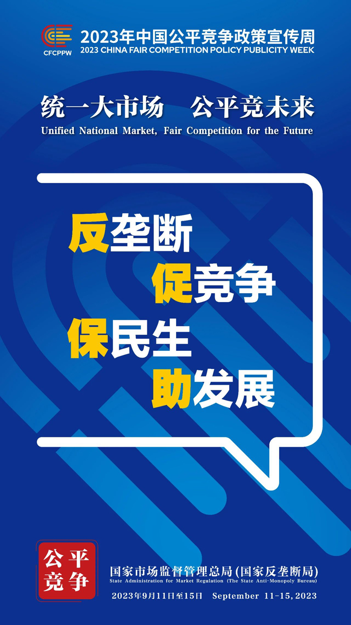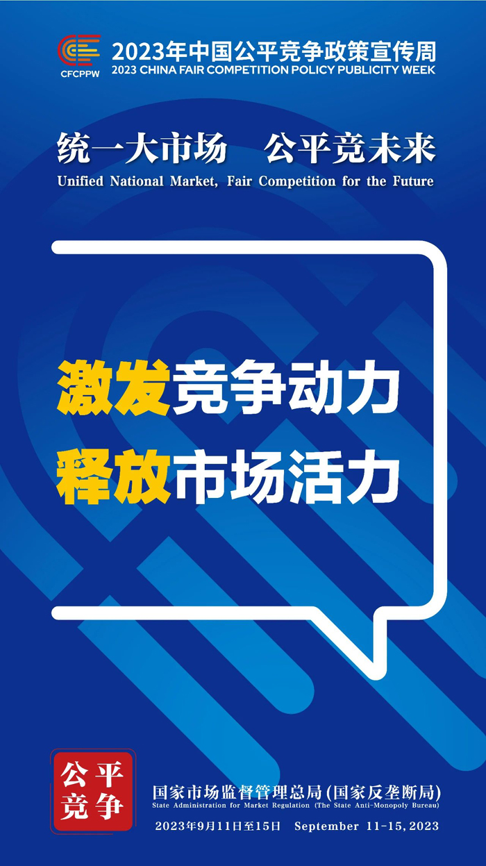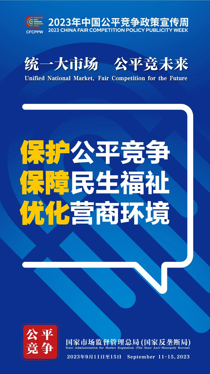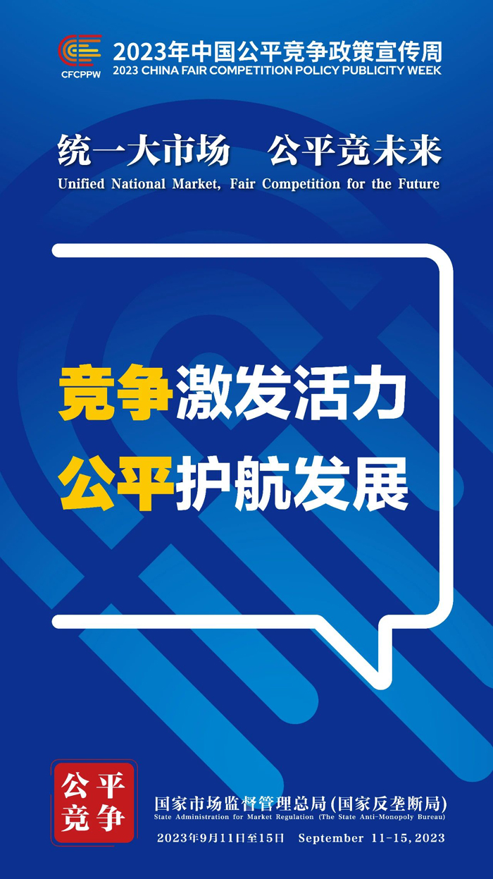 公平競爭是市場經(jīng)濟的基本原則,是市場機制高效運行的重要基礎(chǔ)。近年來,在黨中央、國務院堅強領(lǐng)導下,我國公平競爭治理取得重要成就,公平競爭制度不斷完善,公平競爭秩序穩(wěn)步向好,公平競爭理念深入人心,競爭領(lǐng)域制度型開放持續(xù)拓展。舉辦2023年中國公平競爭政策宣傳周,大力培育和弘揚公平競爭文化,是貫徹落實黨中央、國務院有關(guān)決策部署的重要舉措,對引導全社會形成公平競爭的良好風尚、促進經(jīng)濟實現(xiàn)質(zhì)的有效提升和量的合理增長具有重要作用。