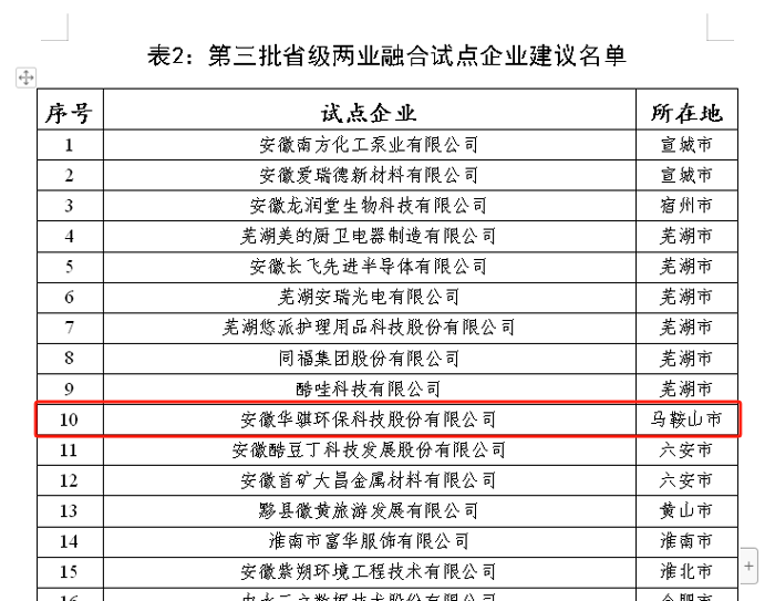 近日,安徽省發(fā)展和改革委員會網(wǎng)站發(fā)布《“十四五”第三批省級先進制造業(yè)和現(xiàn)代服務(wù)業(yè)融合試點公示》,確定30家單位為第三批省級兩業(yè)融合試點企業(yè),安徽華騏環(huán)保科技股份有限公司成功入選!
