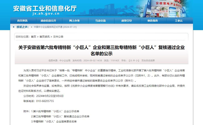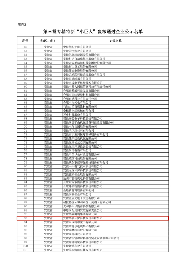 為深入貫徹習近平總書記關(guān)于“培育一批‘專精特新’中小企業(yè)”的重要指示精神,工業(yè)和信息化部于近日開展了第六批專精特新“小巨人”企業(yè)培育和第三批專精特新“小巨人”企業(yè)復(fù)核工作,安徽華騏環(huán)??萍脊煞萦邢薰就ㄟ^第三批專精特新“小巨人”企業(yè)復(fù)核并完成公示。