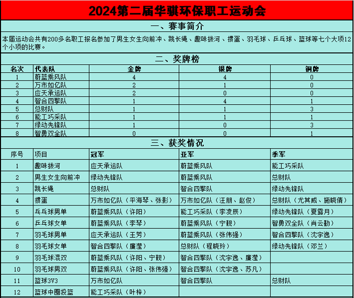 附:2024第二屆華騏環(huán)保職工運動會獎牌榜